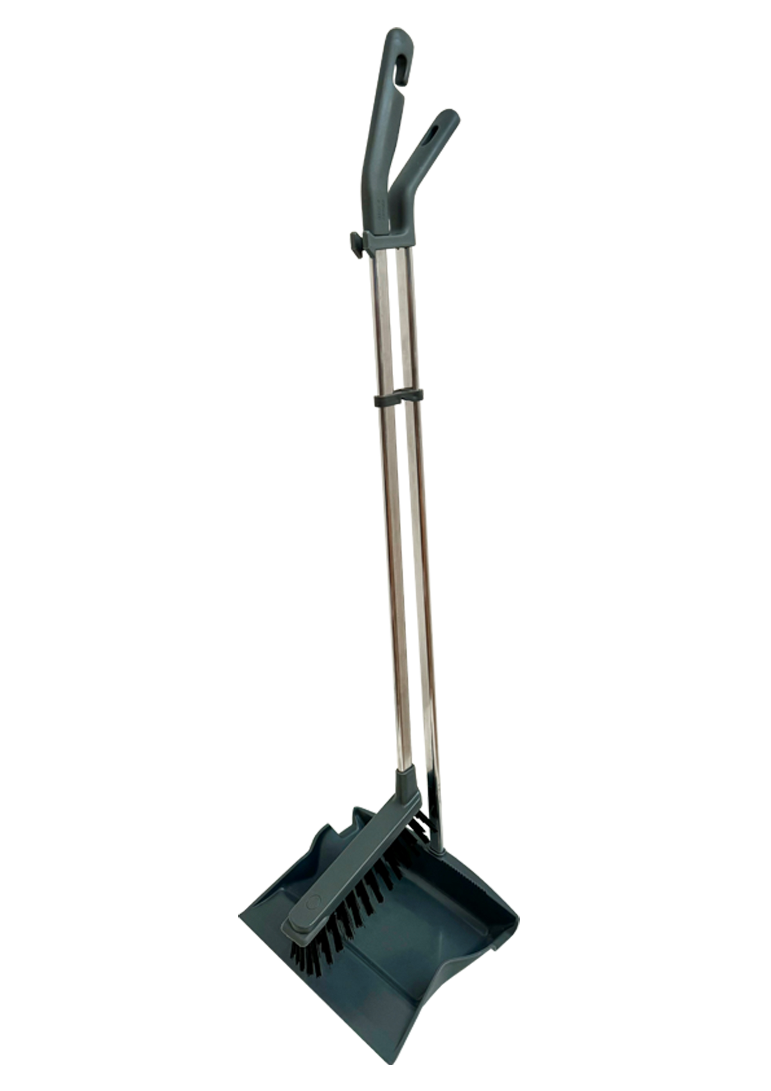 Allmänt: Sopset halvlångt är ett mycket praktiskt redskap för att stående ta upp skräp och vätska från golvet. Skyffelbladet har en följsam golvkant, renstaggar för borsten, tömningsveck och en uppsamlingsnivå för vätskor mm. Sopborsten har även en effektiv skrapa på borstens framkant.